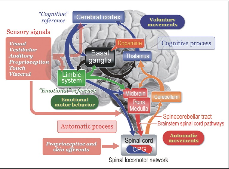 - Kaoru Takakusaki 2017, Functional Neuroanatomy for Posture and Gait Control, J Mov Disord. 10(1): 1–17. Published online 2017 Jan 18. doi: 10.14802/jmd.16062