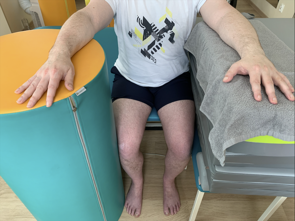 Zaczynając swoją pracę staram się mieć plan na to co chcę osiągnąć, jaka będzie moja kolejna pozycja i w jaki sposób do niej przejdę. Bardzo często pracując ze stopą moim kolejnym krokiem jest to aby przenieść na nią ciężar ciała. W jaki sposób to zrobię to zależy od pacjenta i od jego możliwości. Dla niektórych wystarczającym wyzwaniem będzie pozycja siedząca i wychylanie się przodu aby np. poukładać coś na stole. Dla innych będzie to nauka wstawania i siadania, a dla jeszcze innych praca w pozycji stojącej lub chodzenie.